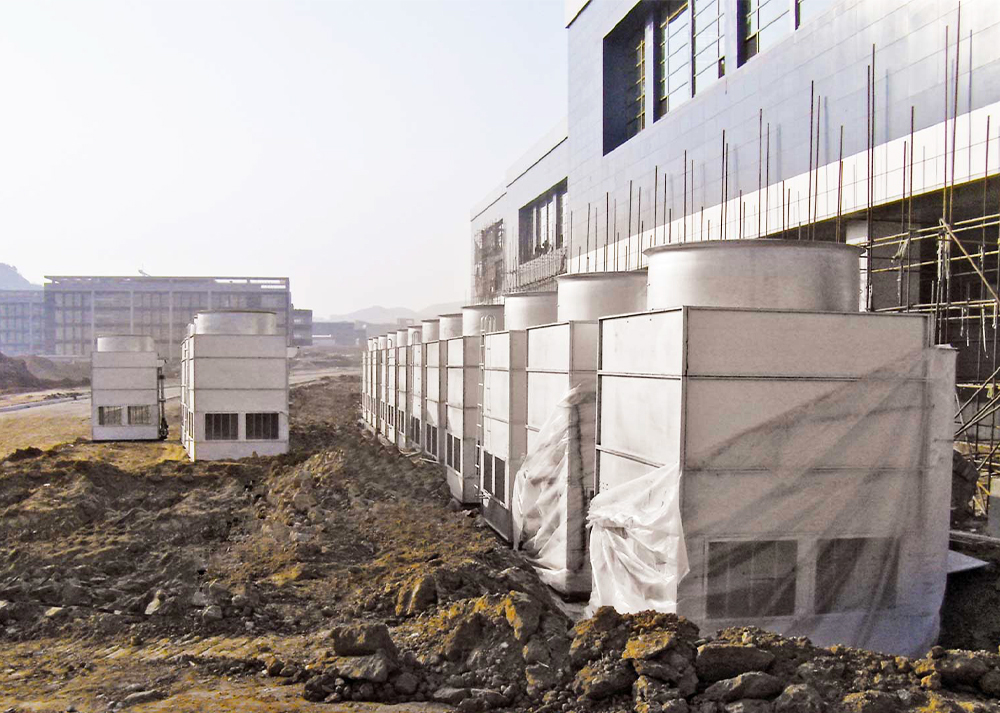 龙之梦购物中心该商场的中央空调项目,系统总水量10000多吨,采用我司24台新型钢制侧流开式冷却塔,并把管路系统做了隐藏,完美的考虑了项目热力性能和整体美观。十一届全运会场馆建设所采用的闭式冷却塔,全部采用我公司N型闭式冷却塔,总共使用26台组,冷却水量约3150t/h,图片为运动会前夕设备刚进场待系统安装的施工现场。