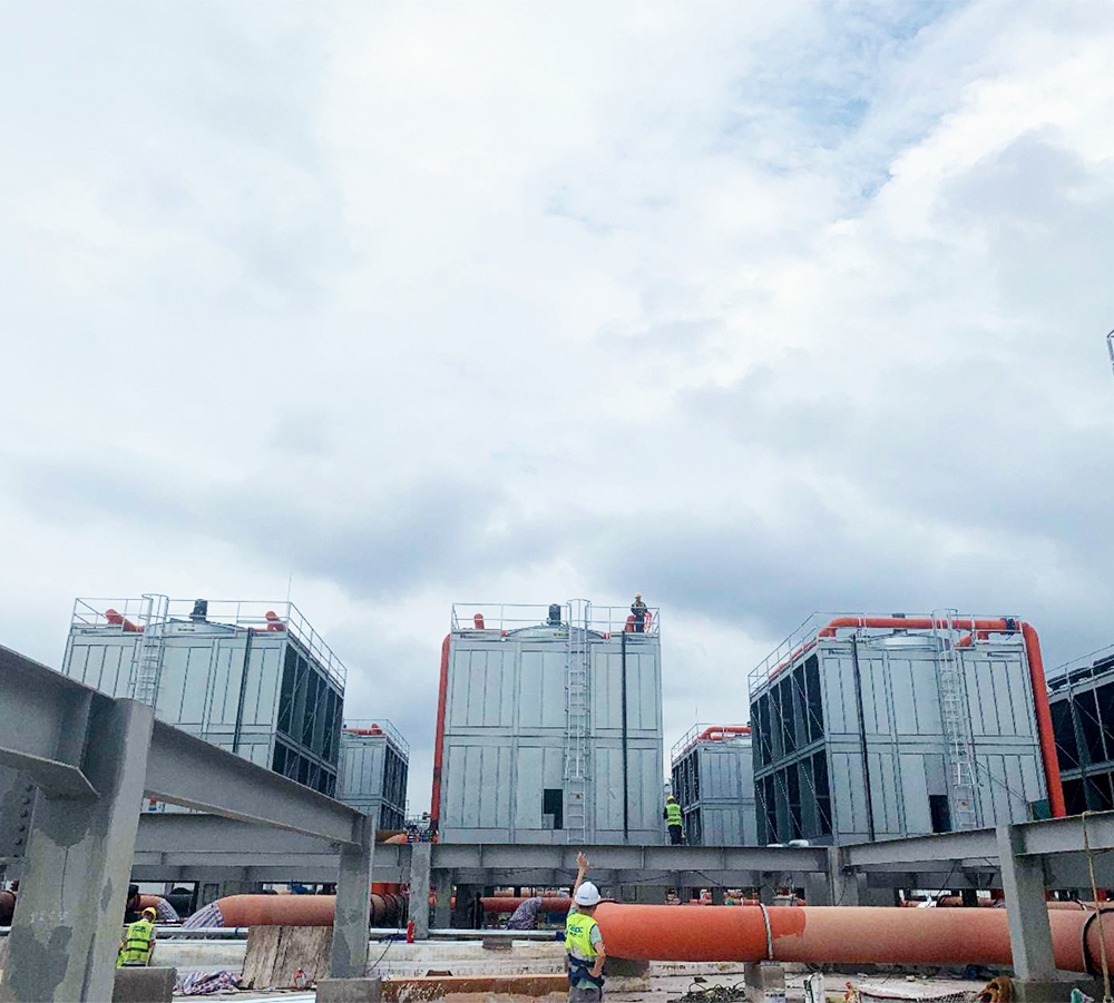 华友钴业十多年来我司持续为华友钴业和其国内、外旗下公司提供冷却塔设备和循环水系统技术服务。先后参与其十多家子公司的60多个项目合作,累计提供的冷却设备循环水量200,000m3/h以上,项目实施在中国浙江、广西、湖北、云南、内蒙古、天津、刚果(金)、印尼等地。TCL中环股份是生产经营半导体材料和集成电路以及光伏的综合知名企业。我司为其天津太阳能叠瓦组件一期二期智慧工厂和25GW太阳能超薄硅单晶片智慧工厂提供热士美冷却塔设备和冷却循环水系统技术服务,累计提供全钢构双工况冷却塔40多台,循环水量超25,000m3/h。