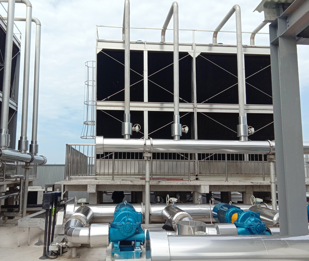 贵州茅台酒股份中试系统能源站项目,采用我司两台经CQC节能认证、CE认证和CTI热力性能认证的FBHL-434QL闭式冷却塔,单台标况下冷却能力达到433吨每小时。